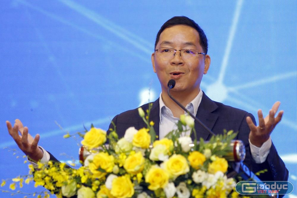 | Giáo sư Vũ Hà Văn - Giám đốc Khoa học Quỹ Đổi mới sáng tạo Vingroup, chia sẻ tại buổi ký kết tài trợ. Ảnh: Tùng Dương. |